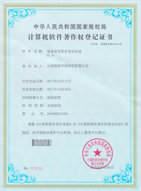 1.計算機軟件著作權(quán)登記證書